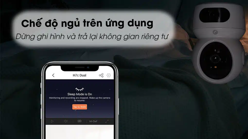 Camera H7c được tích hợp chế độ ngủ trên ứng dụng camera, khi sử dụng chế độ này camera sẽ lập tức hạ mắt camera xuống, dừng ghi hình và trả lại không gian riêng tư cho người dùng.