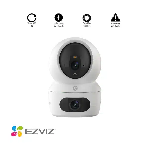 Ezviz TY7 là camera an ninh thông minh với ống kính kép 2K (1440p), cho hình ảnh sắc nét và góc nhìn 360°, đảm bảo không gian được giám sát toàn diện.