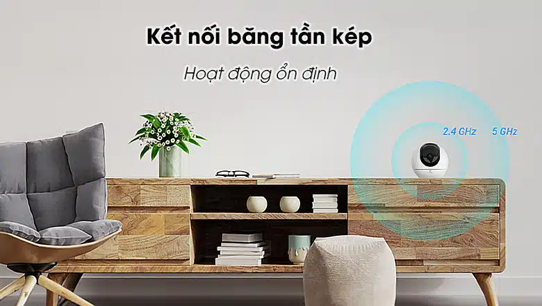 Để giúp quá trình kết nối được ổn định hơn, bạn có thể kết nối camera Ezviz với 2 băng tần 2.4 GHz hoặc 5 GHz.